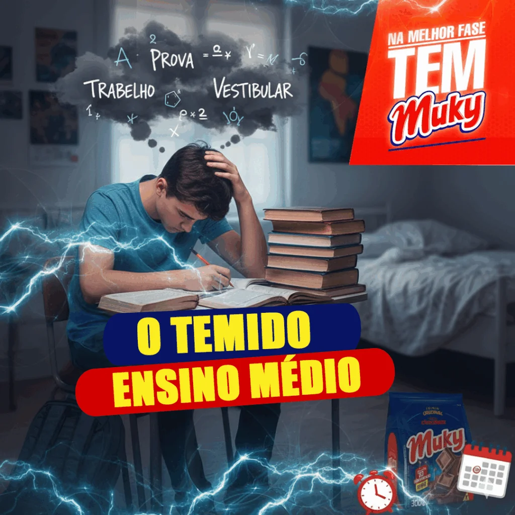 Ensino médio é caos, risadas e descobertas. Vem reviver (ou sobreviver) essa fase com Muky!